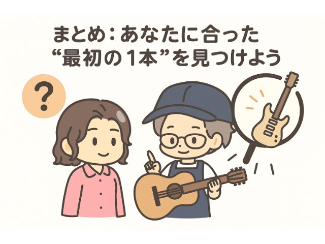 自分の感覚で「これだ」と思える1本を選ぶことが、ギターライフを楽しいものにしてくれます。